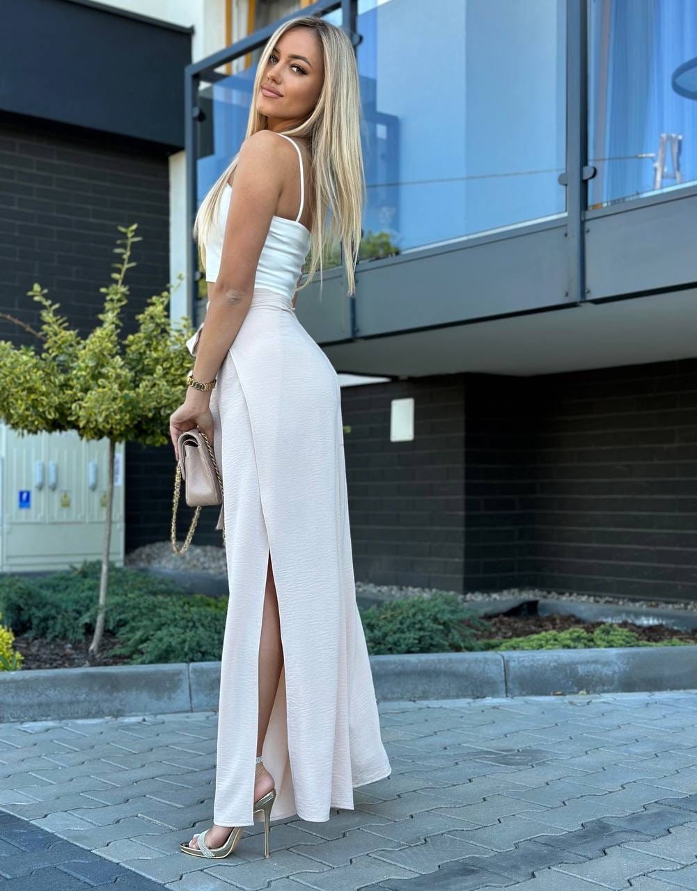 Modelka ma 166 cm wzrostu, ma na sobie rozmiar S.