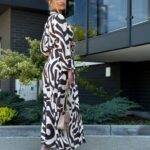 Elegancka sukienka midi z kołnierzykiem, zapinana na złote guziki, to kobieca i uniwersalna propozycja. Długie rękawy zakończone gumką, pasek w talii oraz praktyczne kieszenie podkreślają funkcjonalność i styl. Wykonana z wysokiej jakości materiału, zapewnia komfort noszenia. Pasek dołączony do zestawu.