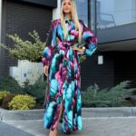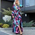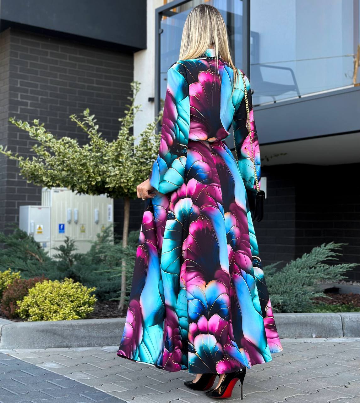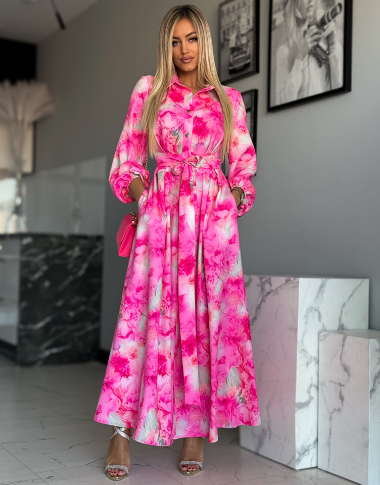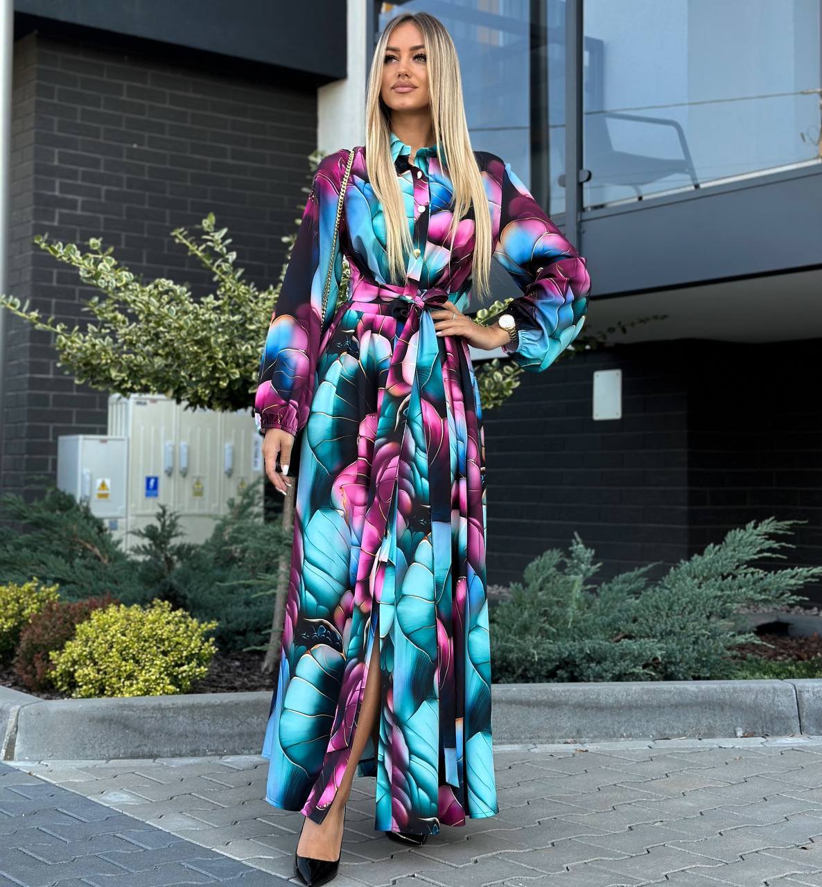 Elegancka sukienka midi z kołnierzykiem, zapinana na złote guziki, to kobieca i uniwersalna propozycja. Długie rękawy zakończone gumką, pasek w talii oraz praktyczne kieszenie podkreślają funkcjonalność i styl. Wykonana z wysokiej jakości materiału, zapewnia komfort noszenia. Pasek dołączony do zestawu.