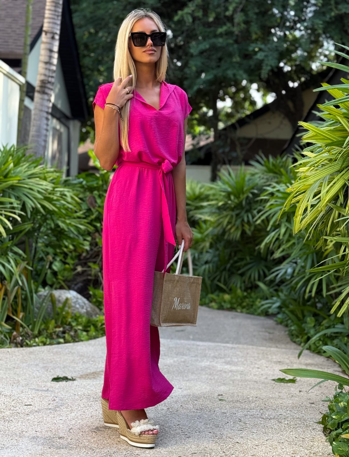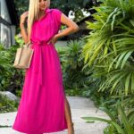 Zwiewna sukienka maxi z kapturem to stylowa i wygodna propozycja na co dzień. Przewiązywana w pasie paskiem (w zestawie), z bocznymi kieszeniami i rozcięciami po bokach, zapewnia swobodę i kobiecy wygląd.