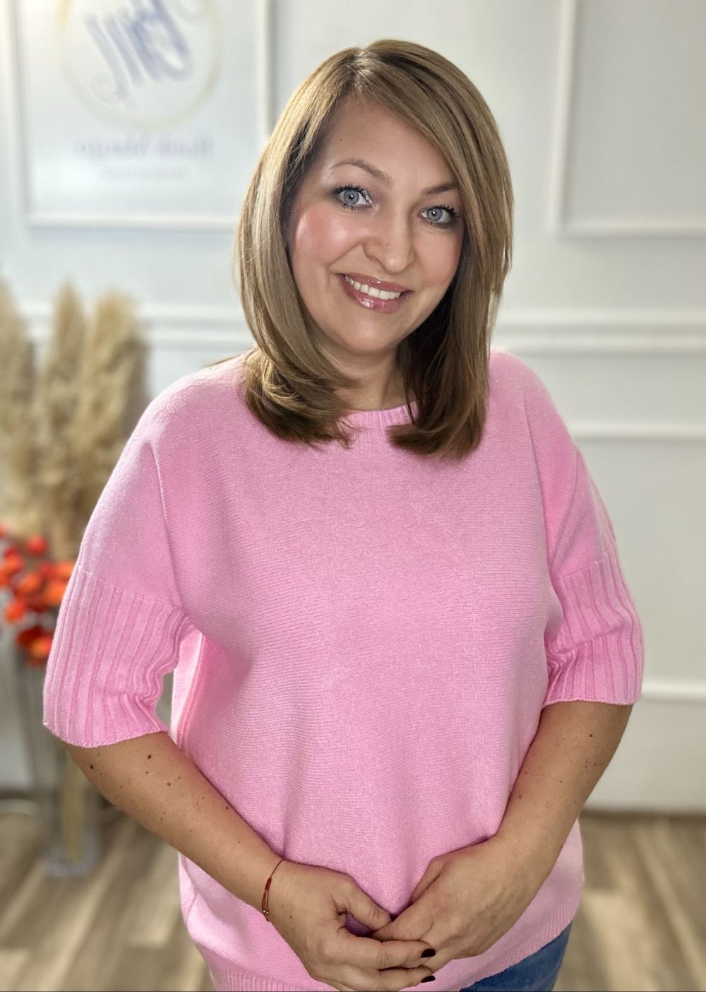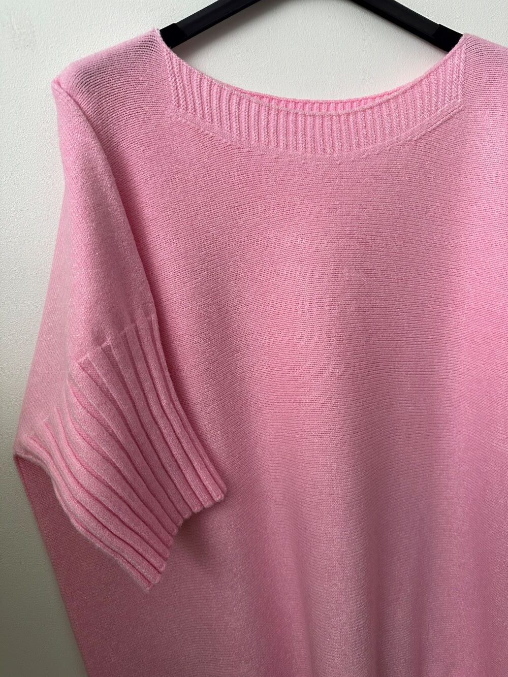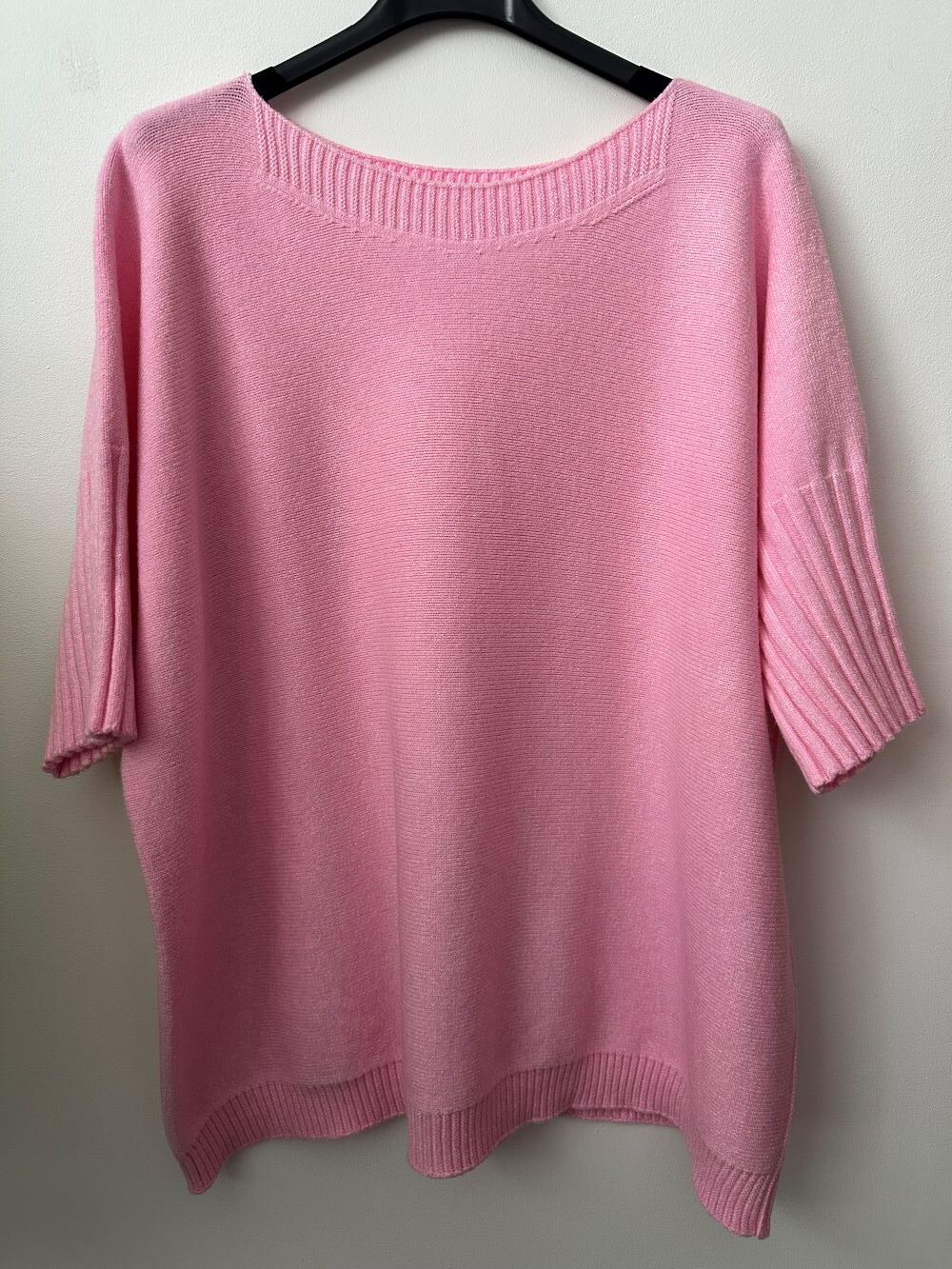 Sweter ŁÓDKA o strukturze kaszmirowej to lekki i elegancki model włoskiej produkcji. Wykonany z wysokiej jakości dzianiny, jest wyjątkowo miękki, elastyczny i przyjemny w noszeniu. Posiada dłuższy, oversize’owy krój, dekolt typu łódka oraz rękawy do łokcia wykończone grubszym prążkiem.
