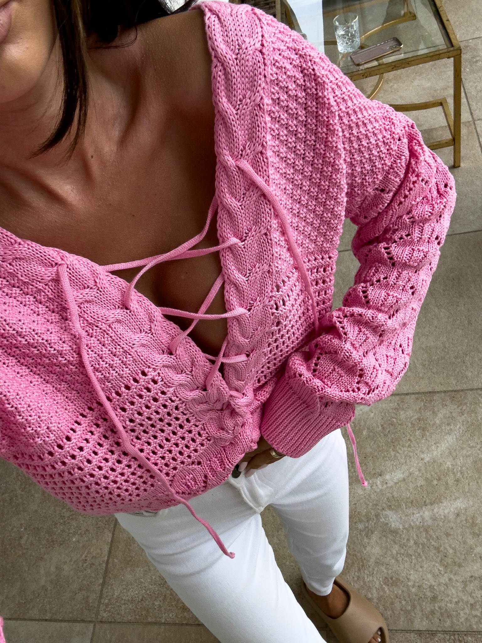 Sweterek SUNNY AUTUMN zakładany przez głowę to wygodna i stylowa propozycja na co dzień. Z przodu znajduje się efektowne sznurowanie, które pozwala na regulację głębokości dekoltu. Miękki materiał zapewnia komfort noszenia i subtelnie podkreśla sylwetkę.