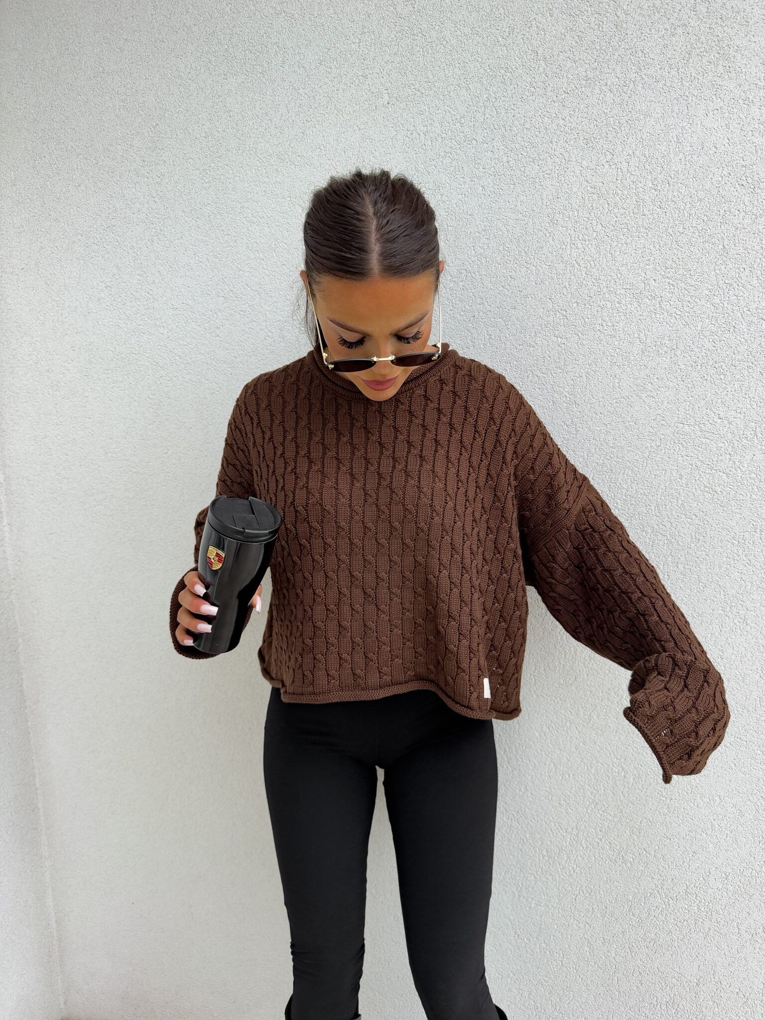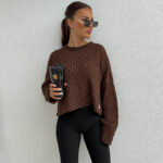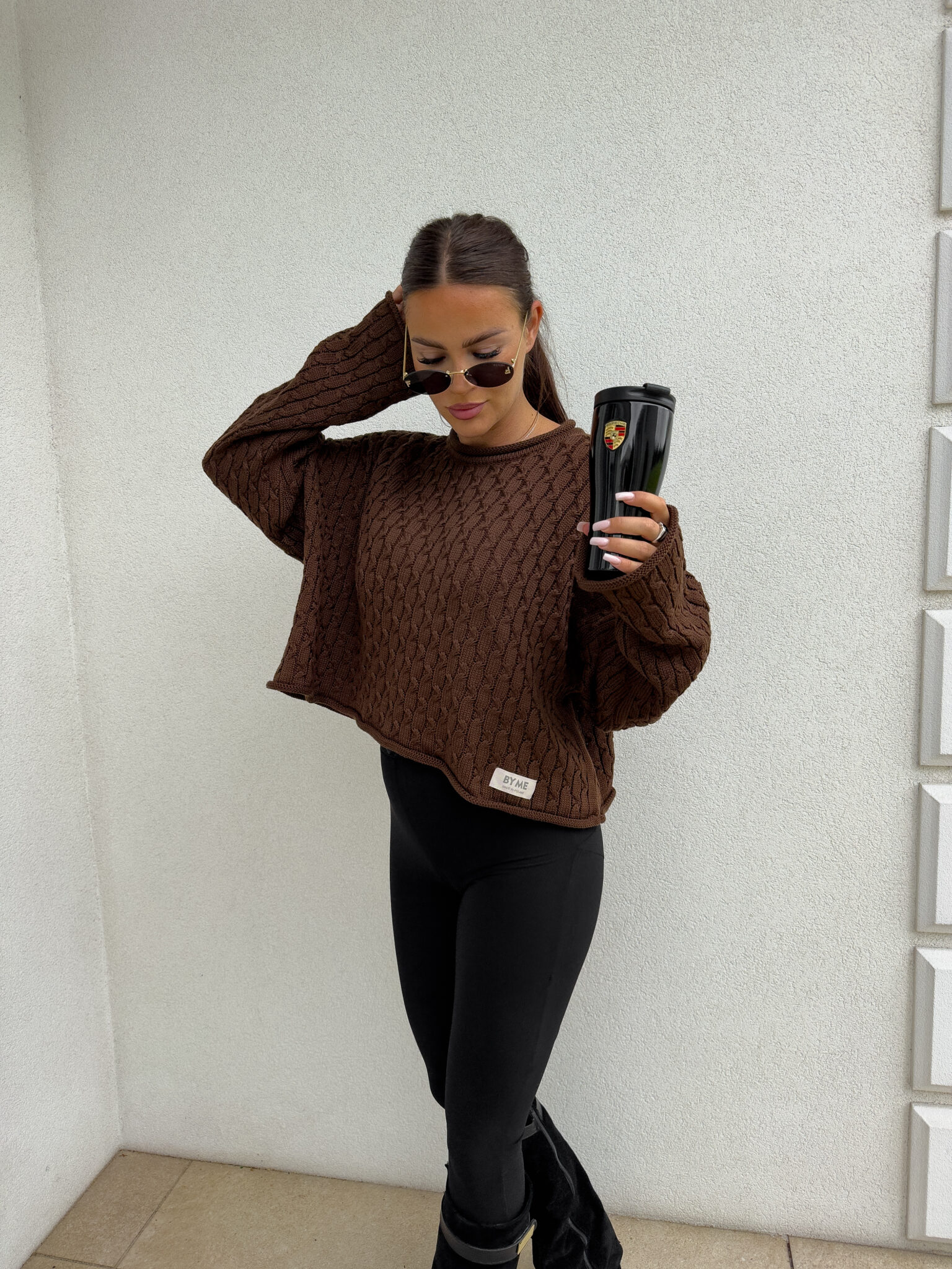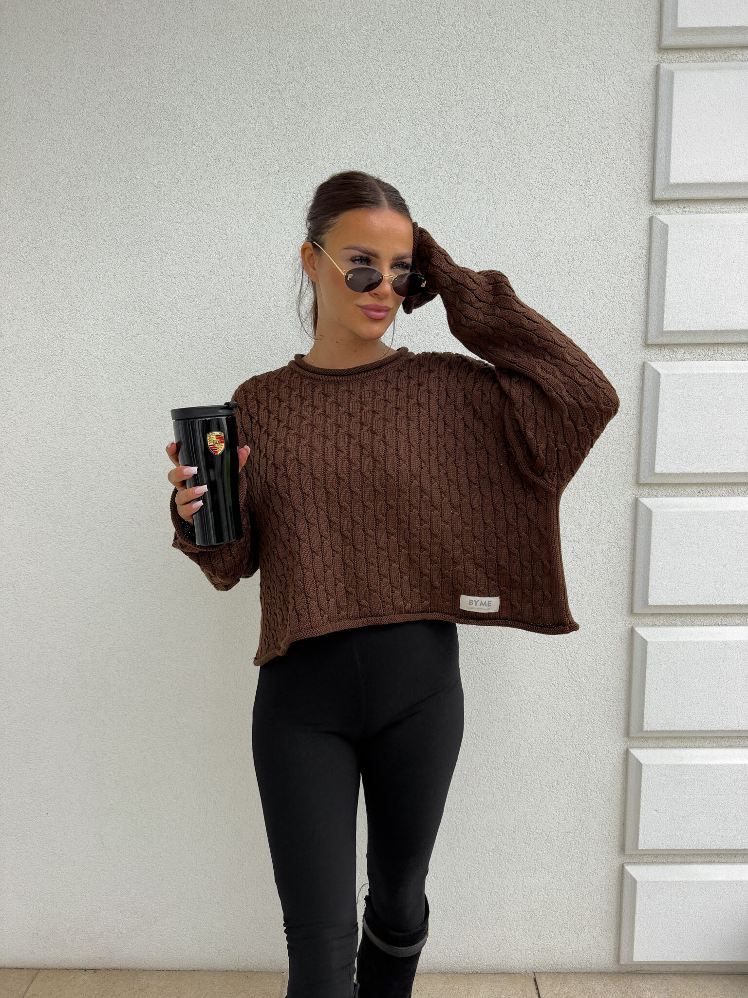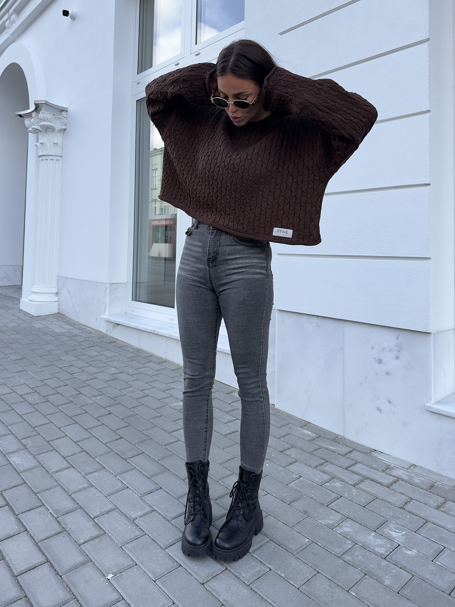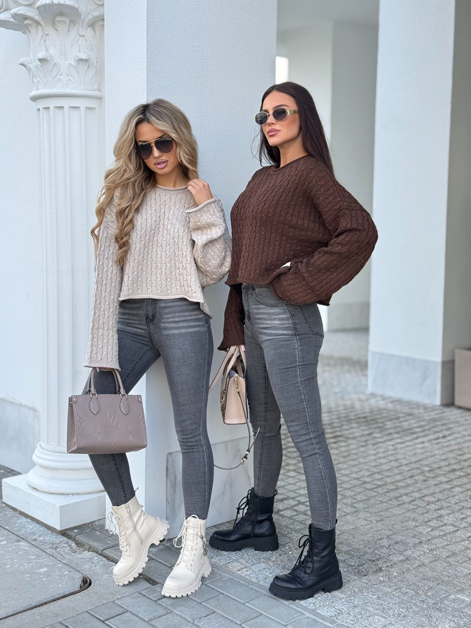 Sweter wykonany z miękkiej, przyjemnej w dotyku dzianiny o klasycznym splocie w warkocze. Luźny, oversize’owy fason gwarantuje wygodę i swobodę ruchów.