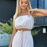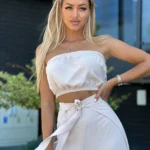Krótki top typu opaska z elastyczną gumką zapewnia idealne dopasowanie i komfort noszenia.