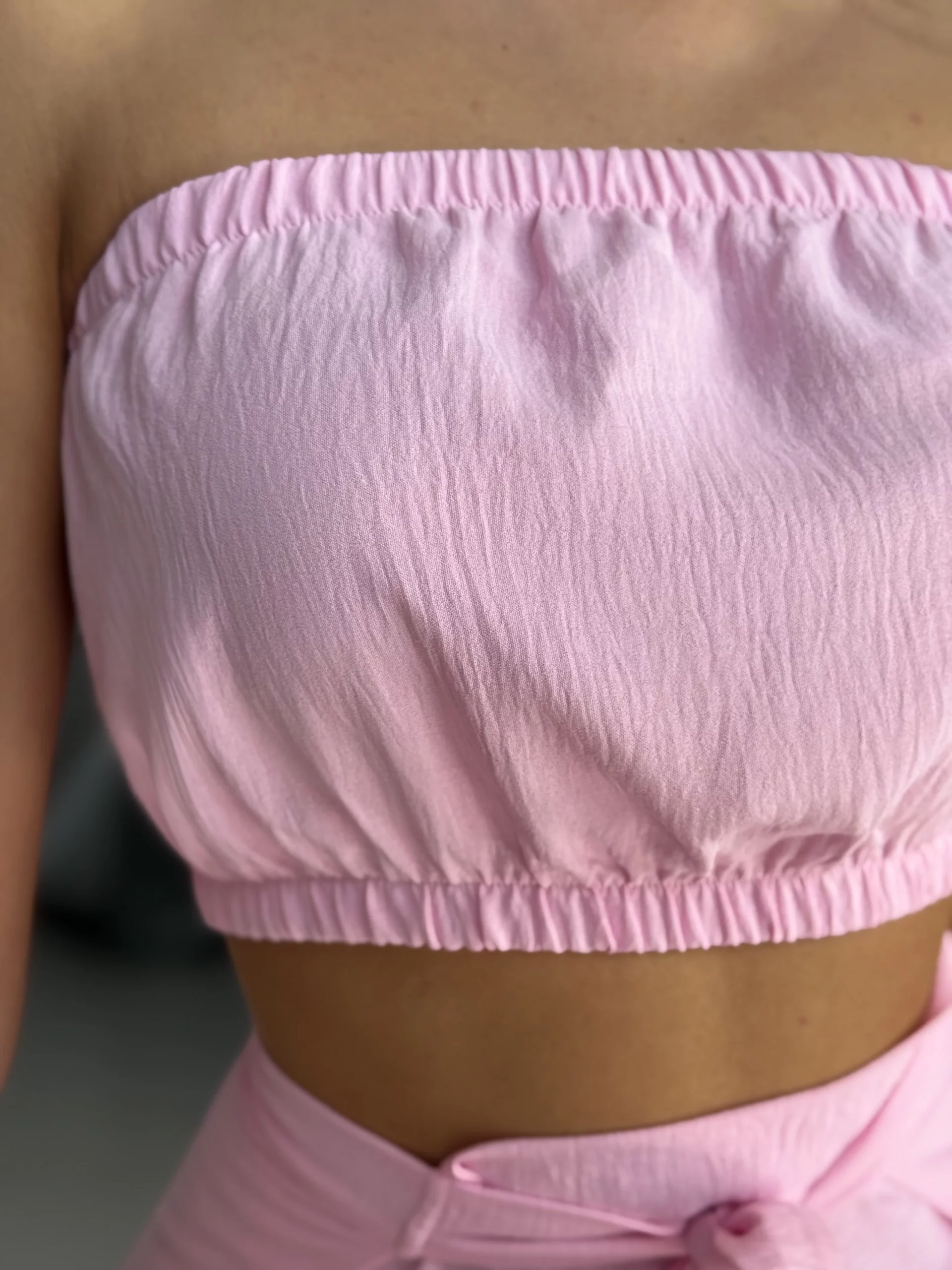 Krótki top typu opaska z elastyczną gumką zapewnia idealne dopasowanie i komfort noszenia.