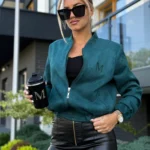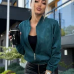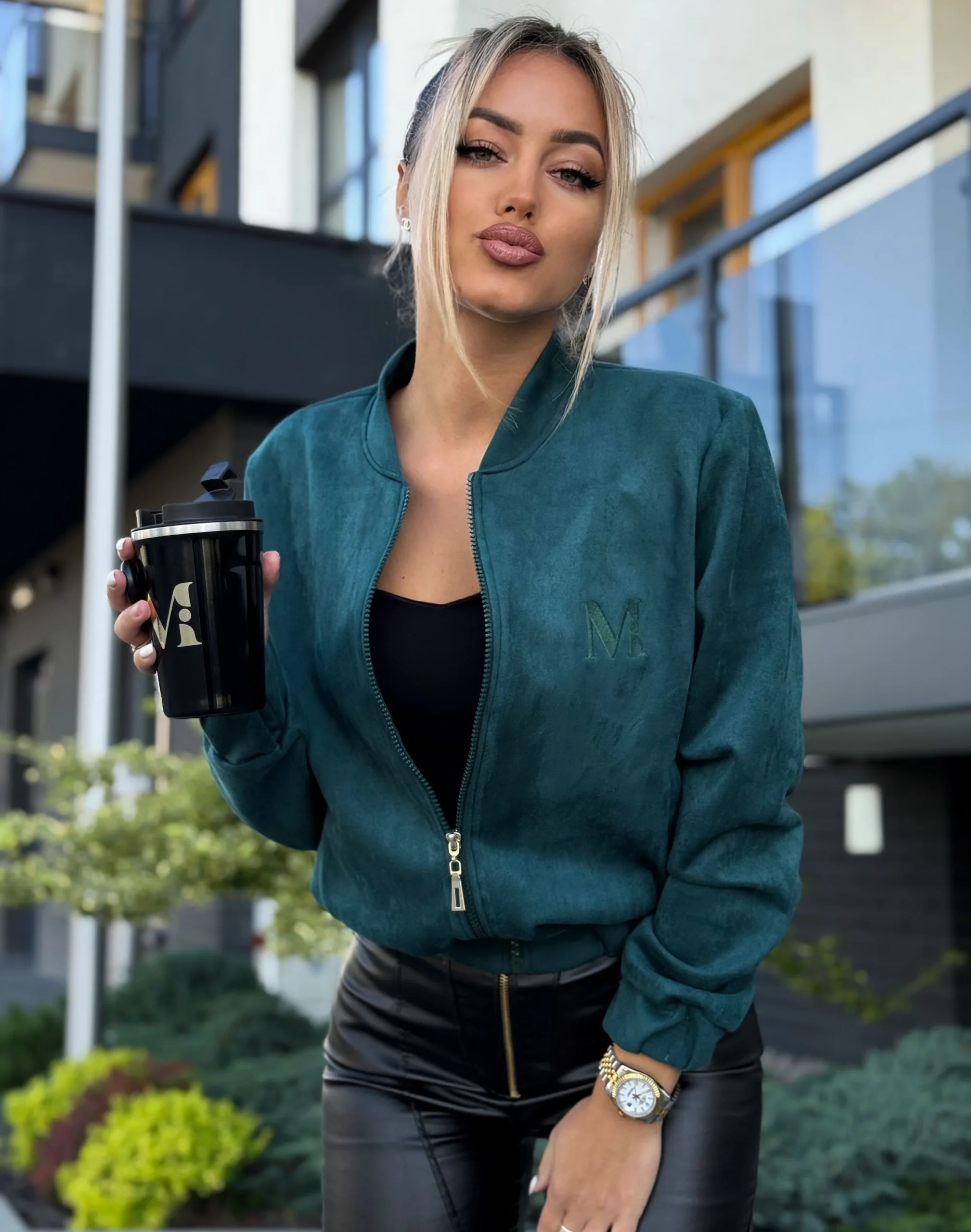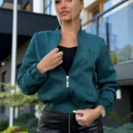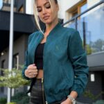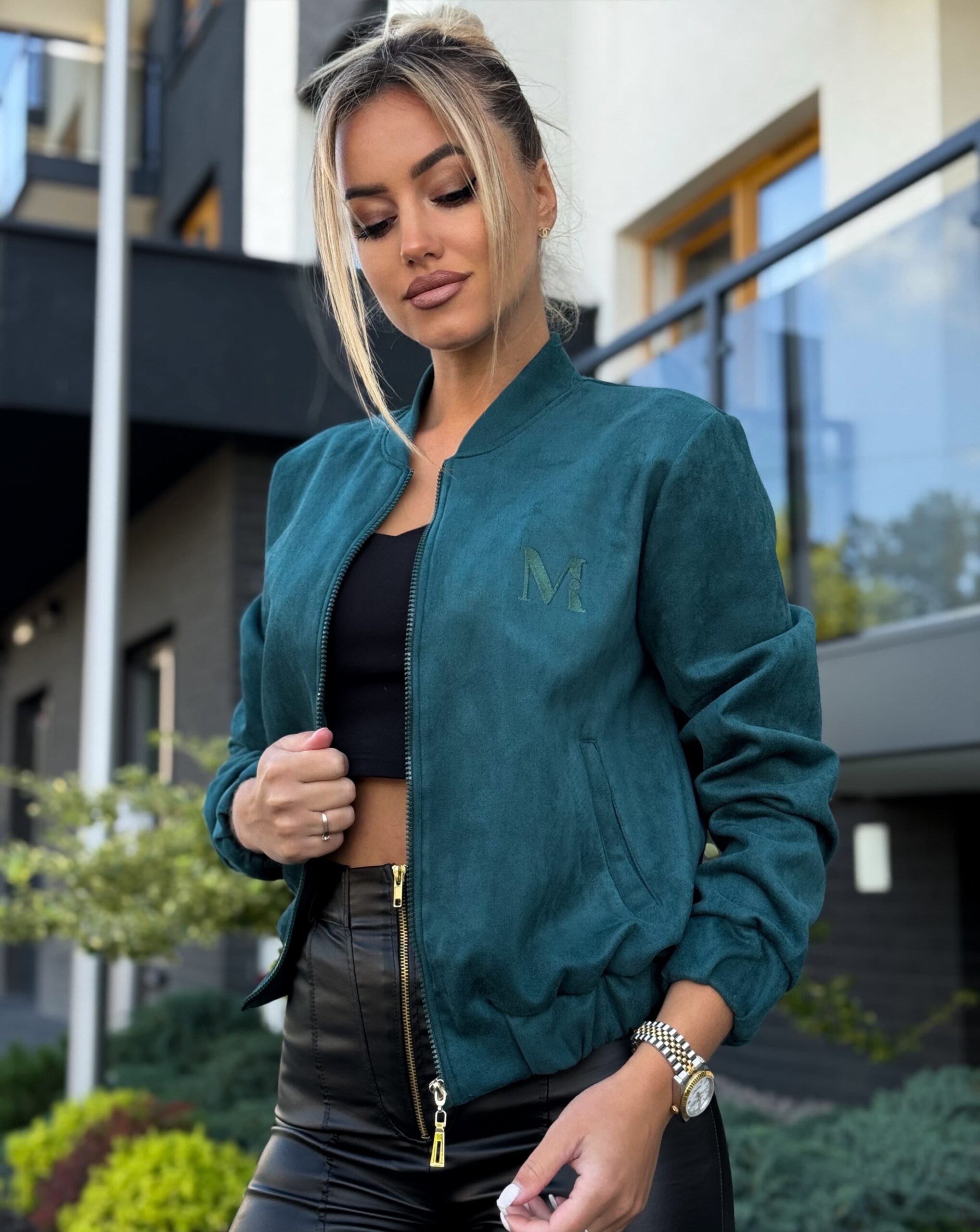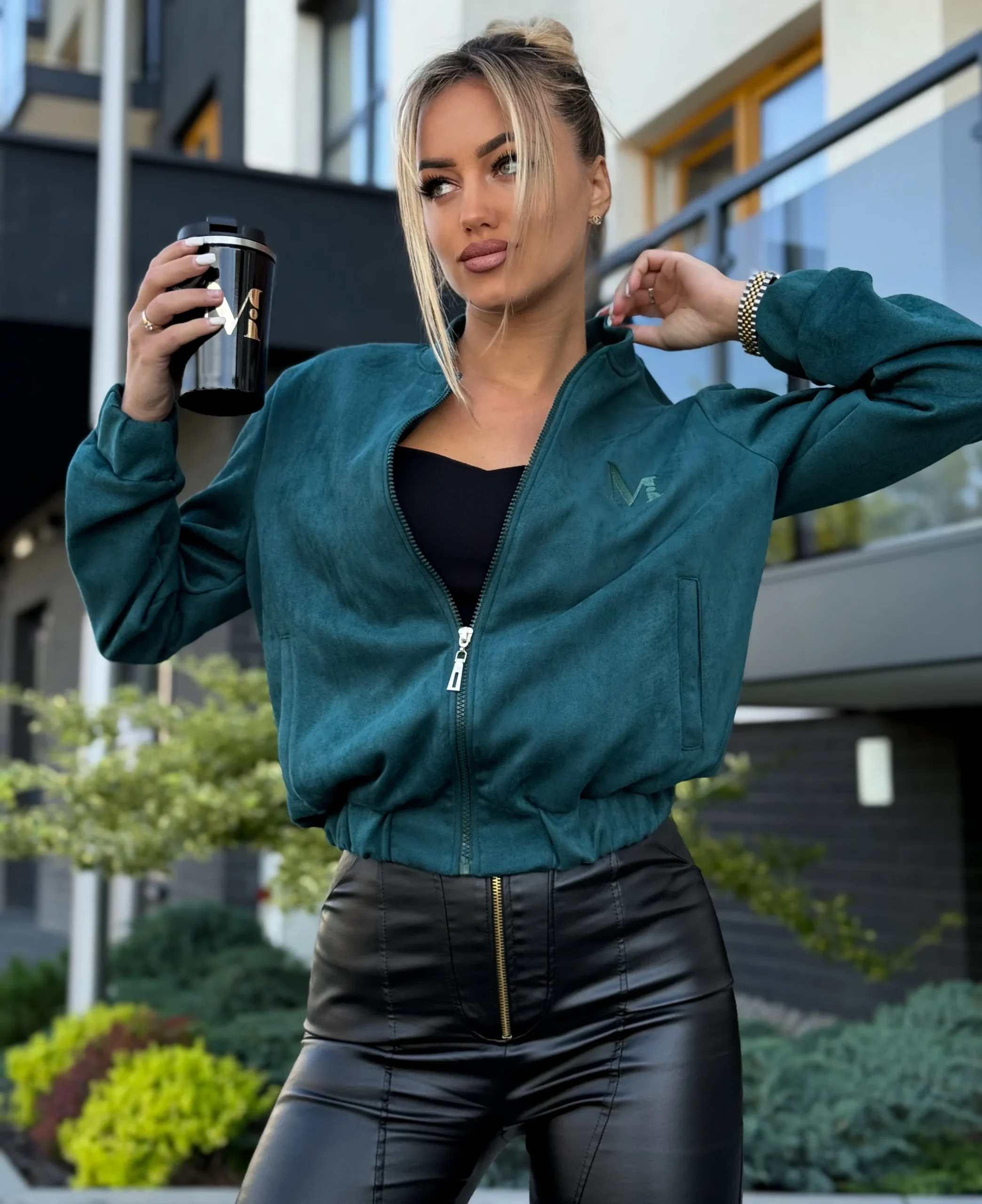 Zamszowa bomberka MARINA – butelkowa zieleń
